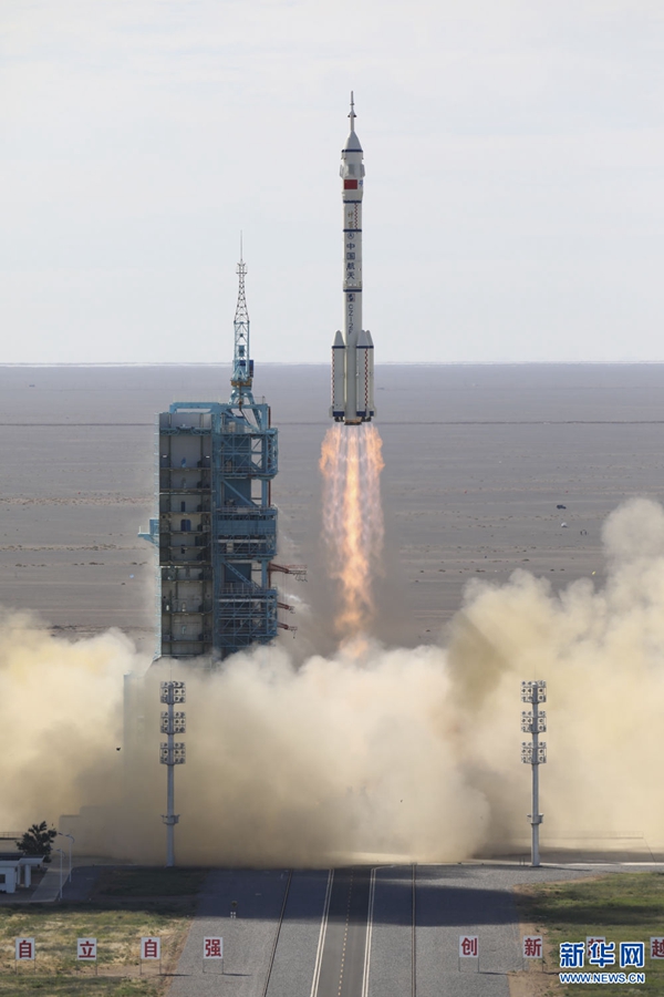 2021年6月17日9時(shí)22分,搭載神舟十二號(hào)載人飛船的長(zhǎng)征二號(hào)F遙十二運(yùn)載火箭,在酒泉衛(wèi)星發(fā)射中心準(zhǔn)時(shí)點(diǎn)火發(fā)射,約573秒后,神舟十二號(hào)載人飛船與火箭成功分離,進(jìn)入預(yù)定軌道,順利將聶海勝、劉伯明、湯洪波3名航天員送入太空,飛行乘組狀態(tài)良好,發(fā)射取得圓滿(mǎn)成功。新華社記者 琚振華 攝