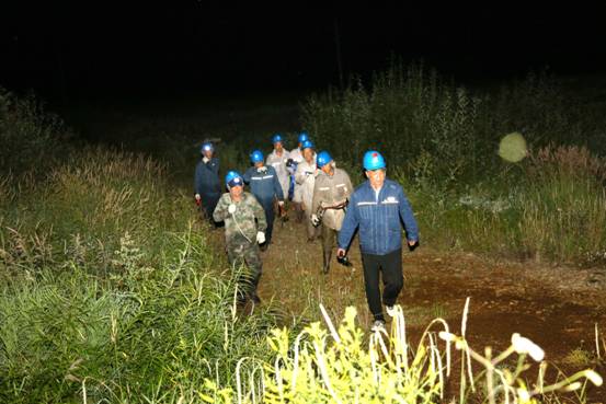 呼中輸電運(yùn)檢班組班長(zhǎng)修春陽(yáng)帶著班組走到公路時(shí)已近深夜,修春陽(yáng)介紹說(shuō):“接到報(bào)損坐標(biāo)后,我們班組迅速到達(dá)坐標(biāo)最近公路處,當(dāng)時(shí)已是19時(shí)許,進(jìn)山時(shí)帶著幾塊月餅和水,天還亮著走了1個(gè)多小時(shí),回來(lái)時(shí)天已經(jīng)黑透了,路上有密林、塔頭墩和近腰深的水路,走了2個(gè)多小時(shí)。”