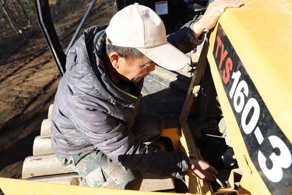 圖為阿木爾林業(yè)局多種經(jīng)營公司大推司機(jī)賀傳路保養(yǎng)車輛