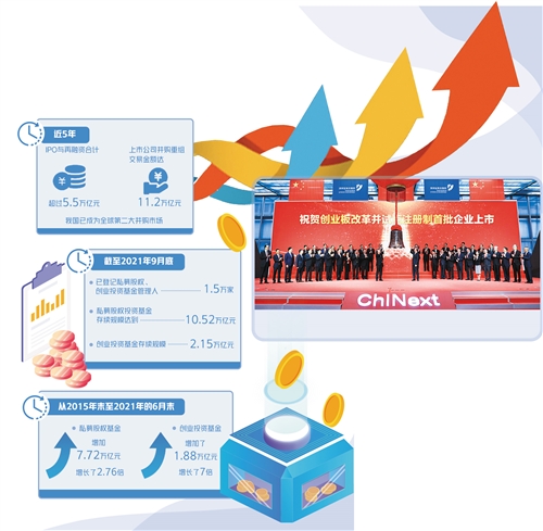值得關(guān)注的是,私募股權(quán)和創(chuàng)投基金已成為直接融資的重要力量,在為投資者創(chuàng)造財富回報的同時,也對直接融資和實體經(jīng)濟具有重要的促進作用。數(shù)據(jù)顯示,截至2021年9月底,已登記私募股權(quán)、創(chuàng)業(yè)投資基金管理人1.5萬家,私募股權(quán)投資基金存續(xù)規(guī)模達到10.52萬億元,創(chuàng)業(yè)投資基金存續(xù)規(guī)模2.15萬億元。從2015年末至2021年的6月末,私募股權(quán)基金增加7.72萬億元,增長了2.76倍。創(chuàng)業(yè)投資基金增加了1.88萬億元,增長了7倍。