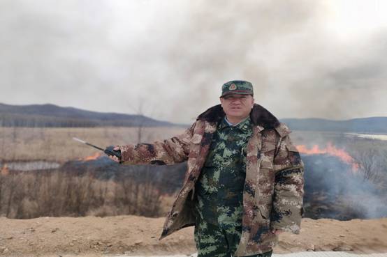 圖為關成國在森林防火秋防點燒防火阻隔帶現(xiàn)場指揮(王越/攝)
