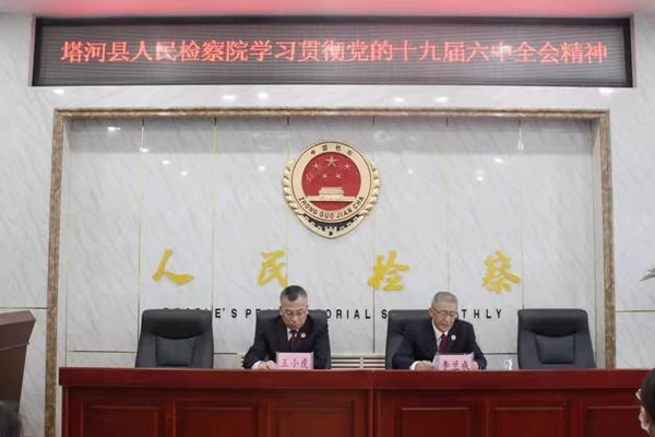 黑龍江經(jīng)濟(jì)網(wǎng)訊(姜曼菲 記者馬朝林)11月16日,塔河縣人民檢察院召開全院干警大會(huì),傳達(dá)學(xué)習(xí)貫徹黨的十九屆六中全會(huì)精神,認(rèn)真落實(shí)大興安嶺檢察分院黨組理論學(xué)習(xí)中心組2021年第十一次(擴(kuò)大)會(huì)議精神,塔河縣人民檢察院黨組書記、代檢察長(zhǎng)王小虎出席會(huì)議并講話,院黨組成員、副檢察長(zhǎng)李蘭成主持會(huì)議。