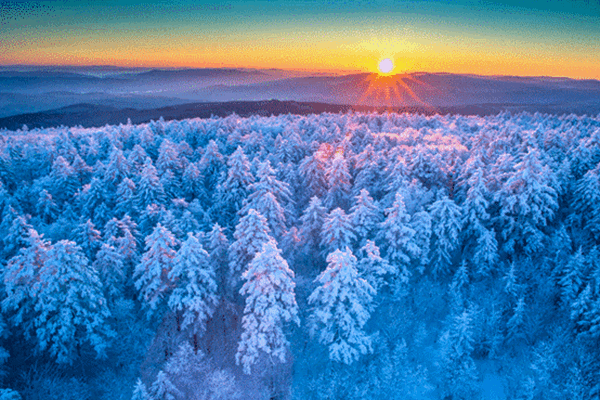 伊春擁有400萬公頃的浩瀚森林,高達83.8%的森林覆蓋率,交相輝映的茫茫林海與皚皚白雪,萬里冰封、壯美遼闊的小興安嶺,構成了這個冬天最浩瀚壯美的景色。夏季的天然氧吧,在冬季化為了冰雪童話世界。大雪過后,五營國家森林公園之中,千樹萬樹猶如梨花盛開,描繪著冬日的醉人景象。