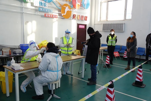 當天一早,雖然天氣較冷,但是民眾排隊秩序井然,均能按照防疫要求規(guī)范佩戴口罩,在志愿者引導(dǎo)下測溫亮碼,保持安全距離進入核酸檢測區(qū)域。現(xiàn)場參與檢測人員更是分工明確,步驟流暢。
