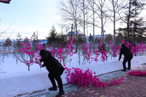 林場以“齊抓共管美環(huán)境、高高興興過大年”為定位,組織職工對辦公區(qū)域進(jìn)行了全方位大掃除,不放過清潔區(qū)的任何一個(gè)衛(wèi)生死角。通過換旗幟、砌雪墻、掛彩燈、制作了手工插花等多種形式,開展了環(huán)境美化亮化活動(dòng),給冬日的場區(qū)打造了一道靚麗的風(fēng)景線。
