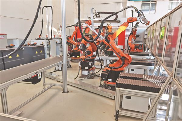 哈工大為企業(yè)研制的自動化冰刀生產(chǎn)線的焊接機(jī)器人。