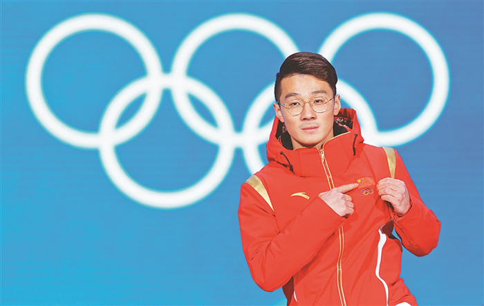 2月8日,冠軍中國(guó)隊(duì)選手任子威出席獎(jiǎng)牌頒發(fā)儀式。當(dāng)日,北京2022年冬奧會(huì)短道速滑男子1000米獎(jiǎng)牌頒發(fā)儀式在北京賽區(qū)頒獎(jiǎng)廣場(chǎng)舉行。新華社發(fā)