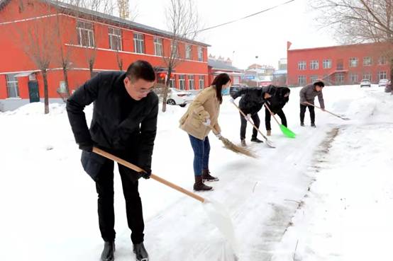 林業(yè)局黨政辦公室組織志愿者分區(qū)分片對林業(yè)局辦公樓前的積雪進行集中清理。黨旗在風雪中迎風飄揚,黨員干部奮力清理著積雪,組成了一幅為民服務、忠誠為民的生動畫面,也進一步展現了機關干部為職工辦實事的責任與擔當。