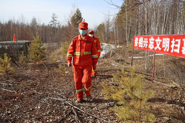 古蓮河露天煤礦防火保衛(wèi)中心職工在火災(zāi)易發(fā)地段進行巡邏(李云田 攝)