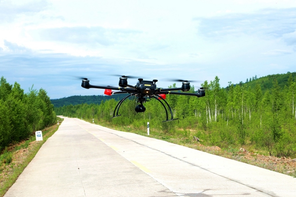 阿木爾林業(yè)局升起六旋翼無人機(jī)精準(zhǔn)核查火場情況(王力 攝)