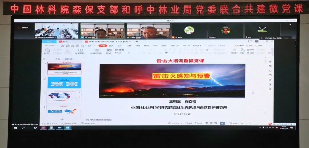 此次活動(dòng)由中國林科院森保學(xué)科黨支部書記呂全主持,教授舒立福、學(xué)院研究所副所長趙文霞、研究員王小藝出席。中國林科院教授王明玉、趙鳳君、李偉克作雷擊火防范和預(yù)警相關(guān)科教專題授課,聯(lián)建雙方就如何推動(dòng)黨建和業(yè)務(wù)雙促進(jìn)、雙提升,展開了深入交流。