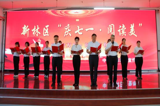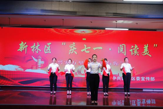 最后,由新林區(qū)處級(jí)領(lǐng)導(dǎo)干部帶來(lái)的詩(shī)朗誦《黨旗飄飄》,以激蕩澎湃的深情頌讀,展示了從空間到時(shí)間、從歷史到當(dāng)前的壯闊畫(huà)面,抒發(fā)了心中對(duì)黨、對(duì)祖國(guó)的無(wú)限熱戀,表達(dá)了永遠(yuǎn)追隨這面光榮旗幟的錚錚誓言和堅(jiān)定決心。聽(tīng)得在場(chǎng)人員心潮澎湃,感慨萬(wàn)千。新林區(qū)將繼續(xù)拓展“興安萬(wàn)里·閱讀有你”全民閱讀活動(dòng),讓越來(lái)越多新林人愛(ài)上閱讀,為新林區(qū)轉(zhuǎn)型振興發(fā)展增添強(qiáng)大精神動(dòng)力,以新林努力、新林有為、新林貢獻(xiàn)的優(yōu)異成績(jī)迎接黨的二十大勝利召開(kāi)。
