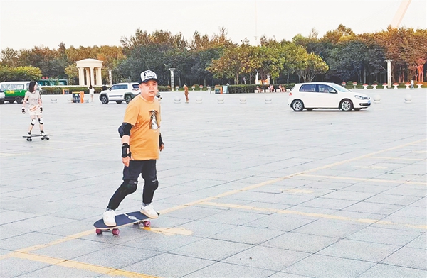 桀驁看起來40歲上下,但其實已經(jīng)47歲??醇軇菟銐驄故欤嬖V記者自己才滑了一個多月?!拔以韧媪藥啄陠伟寤?,刷抖音??磫伟寤┑囊曨l,今年初后臺總給我推送陸沖的內(nèi)容,看著看著喜歡上了,就買了板,和大家一起玩。”