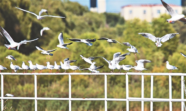 近年來,隨著環(huán)境保護(hù)力度的加大,松花江生態(tài)持續(xù)向好,水豐魚多,給紅嘴鷗等候鳥提供了豐富的食物。每年,都有超過萬只的紅嘴鷗春秋兩季在松花江這處“驛站”歇腳。 黑龍江日?qǐng)?bào)記者 張澍攝
