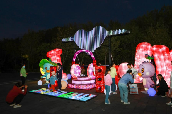 最受歡迎的要數(shù)“我愛嘉蔭”燈組,嘉蔭的吉祥物佳佳和音音在燈組中可謂是畫龍點晴,人們在觀賞的同時通過踩踏鋼琴進行互動,借助燈組內部配置的音響系統(tǒng),演奏出美妙的樂章,讓人們深刻體會到嘉蔭、傳“佳音”的美好體驗。