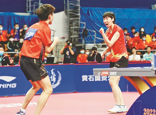 本報(bào)訊(記者楊鐳)9日,在湖北黃石舉行的2022全國乒乓球錦標(biāo)賽進(jìn)行了混雙決賽的爭奪,黑龍江隊(duì)的奧運(yùn)冠軍王曼昱與廣東名將林高遠(yuǎn)搭檔,在決賽中4比2擊敗去年世乒賽該項(xiàng)目冠軍王楚欽/孫穎莎,將金牌收入囊中。