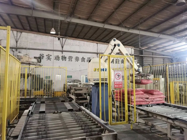 谷實生物集團車間里的碼垛機器人。
