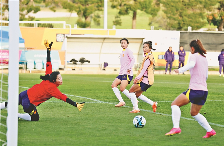 7月10日歸隊(duì)的王霜已完全融入,過障加速、接球射門,王霜彈無虛發(fā)。在6對(duì)6半場(chǎng)演練中,助理教練馬曉旭加入到王霜率領(lǐng)的黃隊(duì),與唐佳麗、張馨所在的紅隊(duì)展開對(duì)攻大戰(zhàn)??焖俚墓シ擂D(zhuǎn)換、漂亮的進(jìn)球讓看臺(tái)上的球迷興奮不已,有球迷甚至打開了手機(jī)直播。