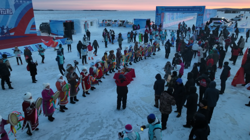 為豐富此次冰馬活動內涵,賽事主辦方邀請當?shù)睾照茏迦罕娚碇照茏鍌鹘y(tǒng)服裝歡歌起舞,為比賽祈福、為選手祝福;并為選手特制提供了紅魚籽、蔓越莓鮮果、玖成富硒米等特色禮包;除此之外,比賽現(xiàn)場還設置了鄉(xiāng)村美食科目三冰上比舞、蔓越莓煮酒論英雄、冰缸曬寶等觀賞互動環(huán)節(jié),沿賽道沿岸打造了東字迷宮、“東極冰雪世界”主題樂園,充分展示地方特產資源和地域文化特色,為參觀比賽的全國各地游客提供更加豐富的視覺和味覺的盛宴。