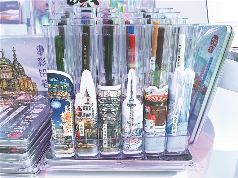 “‘爾濱’爆火,八方客來,除了帶點(diǎn)哈爾濱特產(chǎn),還能帶走啥?我們帶著這些思考,創(chuàng)新設(shè)計(jì)了奇趣哈爾濱—打卡攻略系列產(chǎn)品,涵蓋哈爾濱24個(gè)知名景區(qū)景點(diǎn)。只要用手機(jī)輕觸彩色鉛筆的包裝盒,就能沉浸式游‘爾濱’。”尚志市珍珠筆業(yè)有限責(zé)任公司市場(chǎng)運(yùn)營主管沈瑩介紹,公司生產(chǎn)的全芯無木筆市面稀有,之前一直出口,在歐美國家熱銷,這兩年參加哈洽會(huì),大受歡迎。彩色鉛筆不僅適合孩子們書寫、繪畫,成人解壓,還可以作為文創(chuàng)產(chǎn)品送人。展品從實(shí)用性上可分為水溶的、油性的、石墨的和碳化的四種,從設(shè)計(jì)上可以分為奇趣哈爾濱系列、奇趣哈爾濱—打卡攻略系列、中國韻系列和音樂節(jié)系列,可滿足不同人群需求。