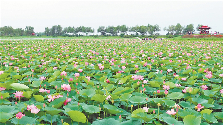 走進(jìn)位于北林區(qū)雙河鎮(zhèn)西南村的正大稻田公園,荷花映日,稻始抽穗,田間不時(shí)有陣陣蛙鳴。藍(lán)天白云之下,綠浪翻滾,游人漫步其間交談著觀光感受,一幅寧?kù)o安適的鄉(xiāng)村田園畫卷徐徐展開?!霸陂e暇的時(shí)候來(lái)到這里散散步,感受戶外樂(lè)趣和田園風(fēng)景,感覺(jué)身心都很放松、很快樂(lè)?!庇慰挖w忠塔說(shuō)。