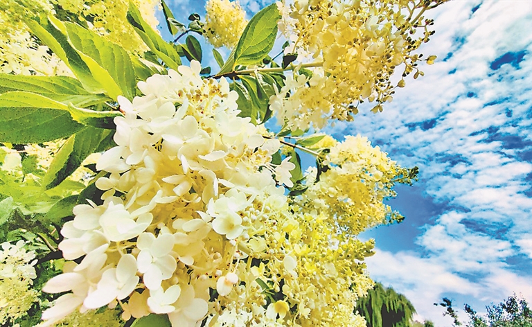 29日,哈爾濱市兒童公園內(nèi),數(shù)十株圓錐繡球正陸續(xù)開花。這些美麗的花朵為夏日冰城再添一道風(fēng)景,吸引了許多游客前來觀看、拍照。