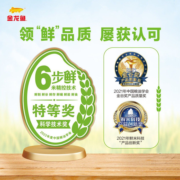 這不是金龍魚6步鮮大米第一次獲得金獎(jiǎng)殊榮。6步鮮大米采用的稻谷“6步鮮米精控技術(shù)”創(chuàng)新體系開發(fā)及產(chǎn)業(yè)化,在2022年獲得了中國(guó)糧油學(xué)會(huì)科學(xué)技術(shù)獎(jiǎng)特等獎(jiǎng)。這也是中國(guó)糧油學(xué)會(huì)科學(xué)技術(shù)獎(jiǎng)當(dāng)年惟一一個(gè)“特等獎(jiǎng)”項(xiàng),含金量可見一斑。
