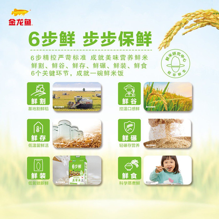 從田間走向國(guó)民餐桌,讓消費(fèi)者可以“天天嘗鮮”,是金龍魚6步鮮大米一直以來為之奮斗的目標(biāo)。