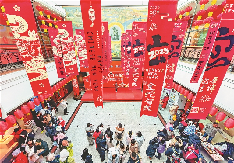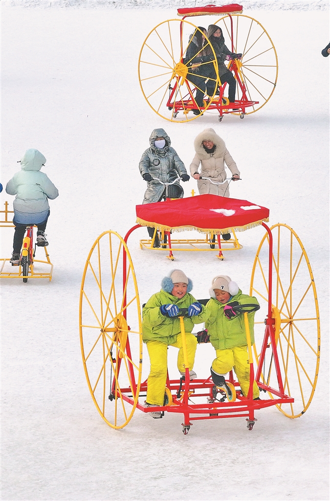 1月29日,大年初一,哈爾濱太陽島雪博會園區(qū),游人如織。孩子們在家長的帶領下,坐雪圈、騎冰上自行車,玩冰戲雪,歡樂融融。省博物館展廳內(nèi),懸掛了紅燈籠、紅條幅,許多市民、游客在參觀學習,打卡拍照,體驗傳統(tǒng)民俗。