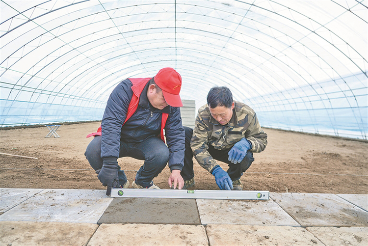 黨員幫助農(nóng)戶改造大棚。