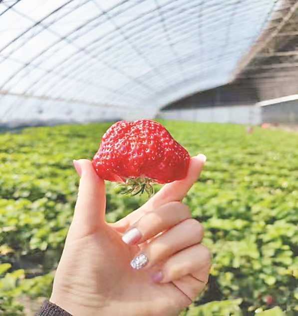 據(jù)園區(qū)負責人張立元介紹,2月份以來,日均接待游客超過100人次,周末時人數(shù)成倍增長。大棚內,草莓占地5畝,通過自主育苗、全程采用無公害種植技術等方式,產量和質量實現(xiàn)雙提升,年產量約6000斤。