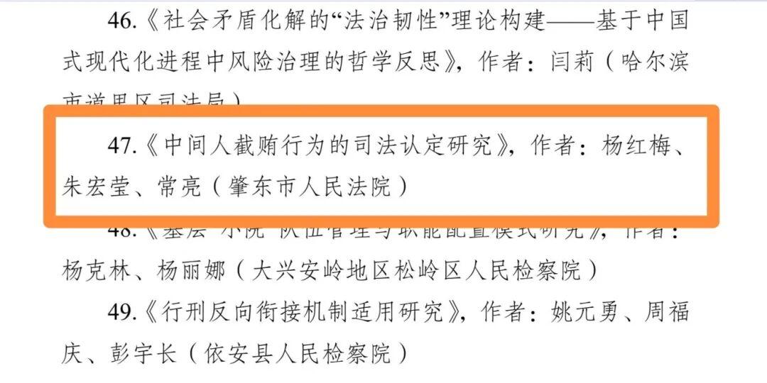其中,督察室負(fù)責(zé)人楊紅梅、審管辦副主任朱宏瑩、審管辦副主任常亮撰寫的論文《中間人截賄行為的司法認(rèn)定研究》,榮獲三等獎(jiǎng);審管辦副主任朱宏瑩、五站人民法庭負(fù)責(zé)人吳迪、審管辦書記員王岳撰寫的論文《無(wú)接觸型性侵兒童犯罪的刑法定性分析》,榮獲優(yōu)秀獎(jiǎng);刑庭法官助理張瑩、刑庭庭長(zhǎng)王帝撰寫的論文《涉訴信訪治理機(jī)制研究》,榮獲優(yōu)秀獎(jiǎng)。