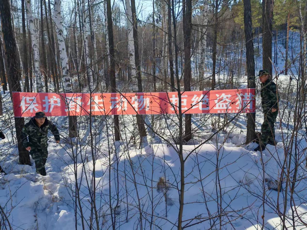 清網(wǎng)行動,鏟除安全隱患。林場積極響應并深入開展“清風行動2025”“百日攻堅”等專項治理工作,在野生動物活動頻繁的重點區(qū)域,持續(xù)組織“巡山清套”等行動。今年以來累計組織開展各類專項行動16項,工作人員克服嚴寒,對可能布設(shè)獵套、獵夾等非法工具的場所進行拉網(wǎng)式排查和清理,堅決從源頭遏制盜獵風險,凈化了野生動物棲息環(huán)境。
