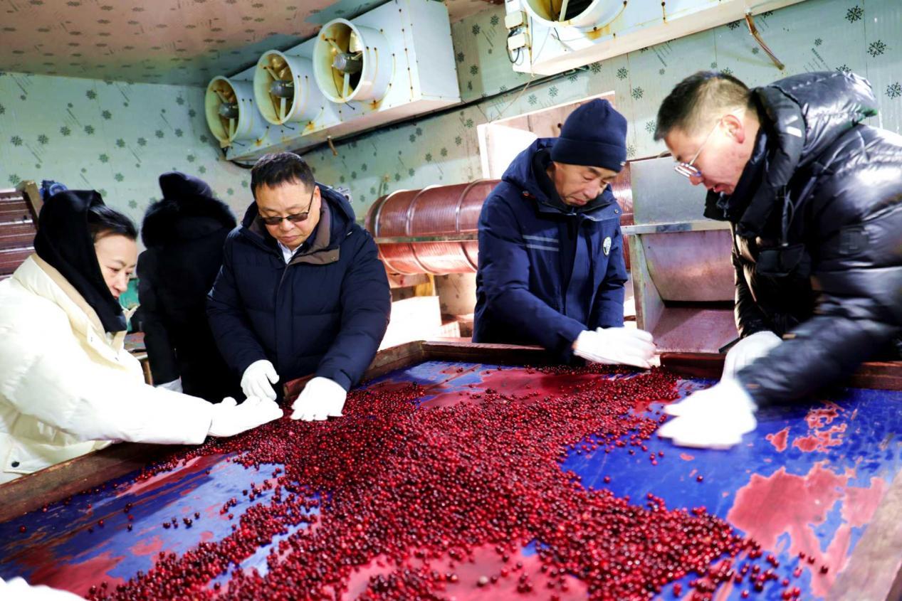 綠林林場干部職工在職工姚德安冷庫,幫助挑選紅豆準(zhǔn)備外銷(王力 攝)