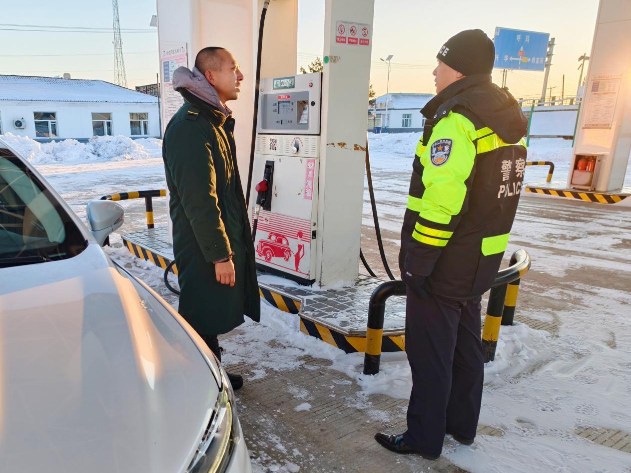 簡單確認(rèn)情況后,民輔警立即攜帶救援物資,前往事發(fā)地點(diǎn),在最短時(shí)間內(nèi)找到報(bào)警人。在詢問車內(nèi)油量大約能達(dá)到最近的加油站后,警車引領(lǐng)報(bào)警人駕駛車輛抵達(dá)最近的加油站,加滿油后囑咐駕駛員雪天路滑,注意行駛速度,切勿疲勞駕駛。